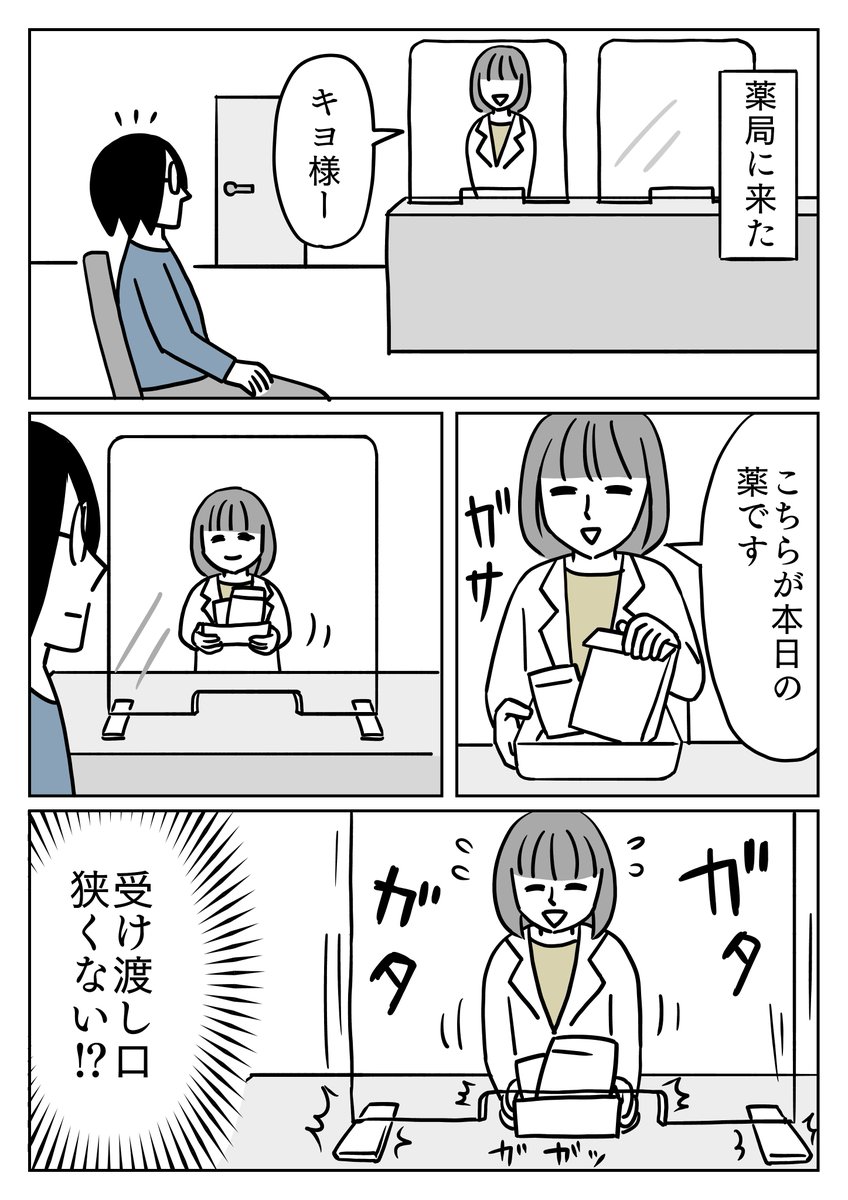 頑張って受け渡し口から、薬を差し出してくれました。 #コミックエッセイ #パーテーション