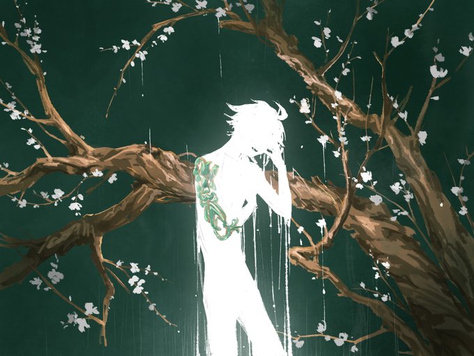 117 710 一个小尝试……学习梅花的画法,想看一些魈的信仰崩塌,神形俱灭……但是只能很浅显的表现出来。边哭边破碎的样子很有美感…… 23/01/13 01:50