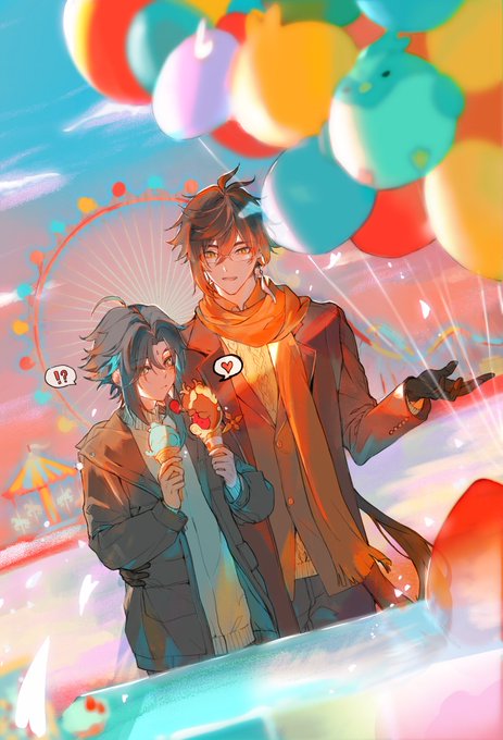 555 2368 #鐘魈 #zhongxiao 游乐园 情人节时与籽籽老师@25103885Cytri 的合绘,我负责了线稿的部分,她负责了色彩🥳 23/03/12 21:04