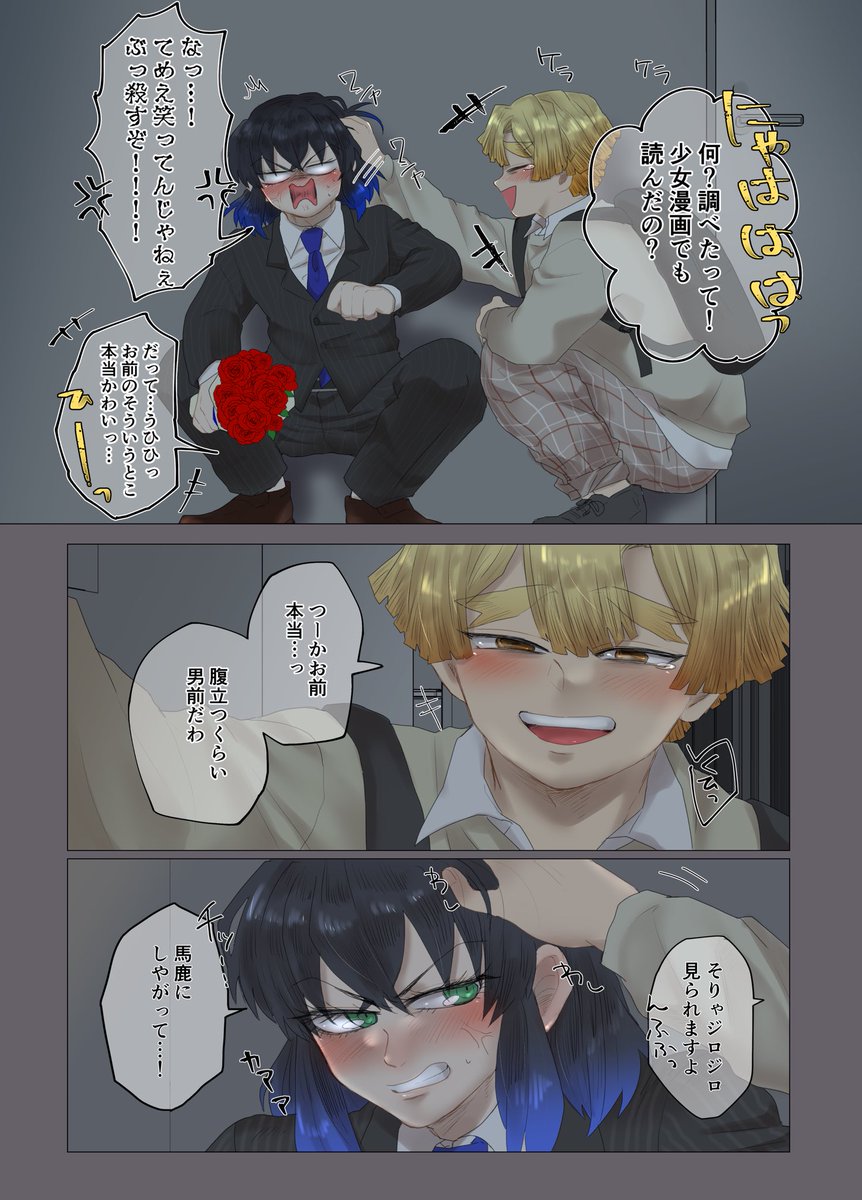 付き合って一年記念の善伊(去年10月の🐗受オンリーで出した漫画です) 支部には既にアップしてるけど画像整理してたら見つけたのでこっちにも再掲