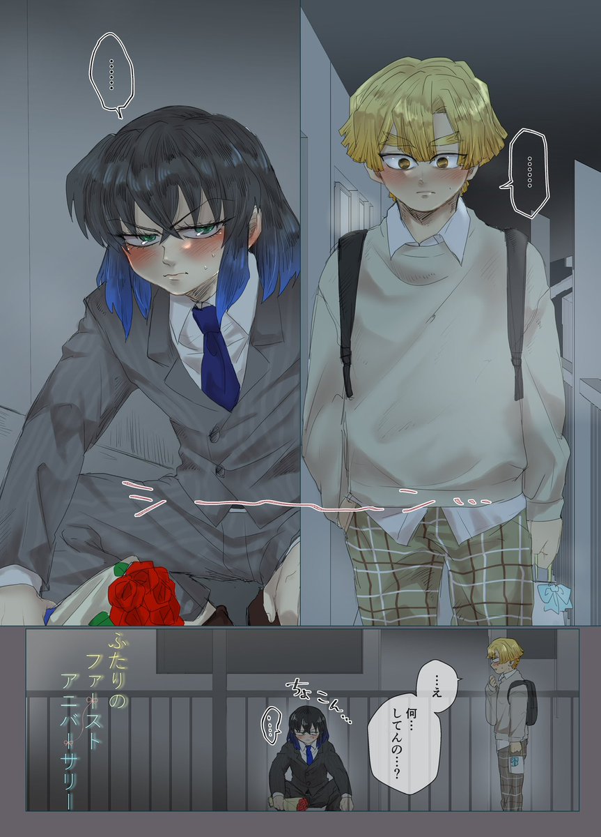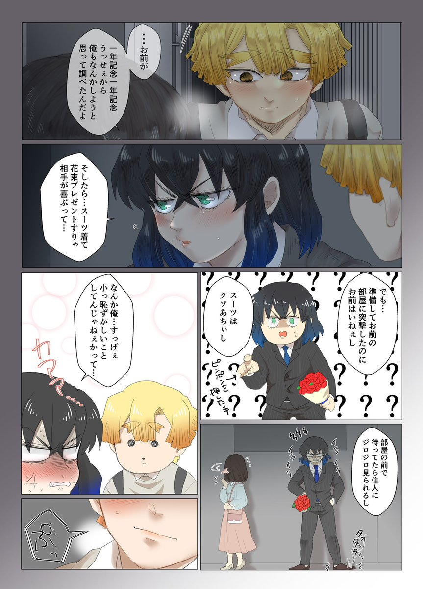9 32 付き合って一年記念の善伊(去年10月の🐗受オンリーで出した漫画です) 支部には既にアップしてるけど画像整理してたら見つけたのでこっちにも再掲 23/01/18 23:04