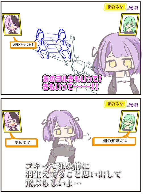 紫宮のここ好きポイントなんですけど、最近紫宮を知った方は彼女が配信終わりまーすって言った後油断せず目を離さないでください #るなぱれっと