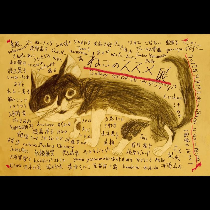 構図を思案中(^ΦωΦ^) 京都のギャラリー『Gallery GEORGE 』 に出展することになりました。 ねこのススメ展 【会期】9月13日(火)~18日(日)11:00~18:00 最終日16:00 【場所】ちいさいおうち Gallery Little House 京都市下京区鶏鉾町478 #ネコイラスト #絵描きさんと繋がりたい