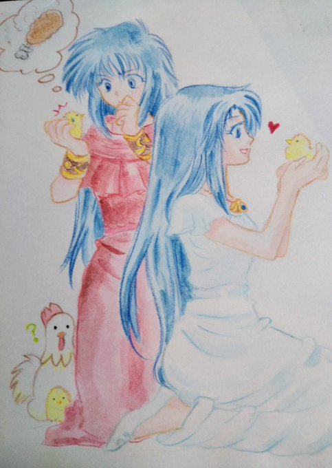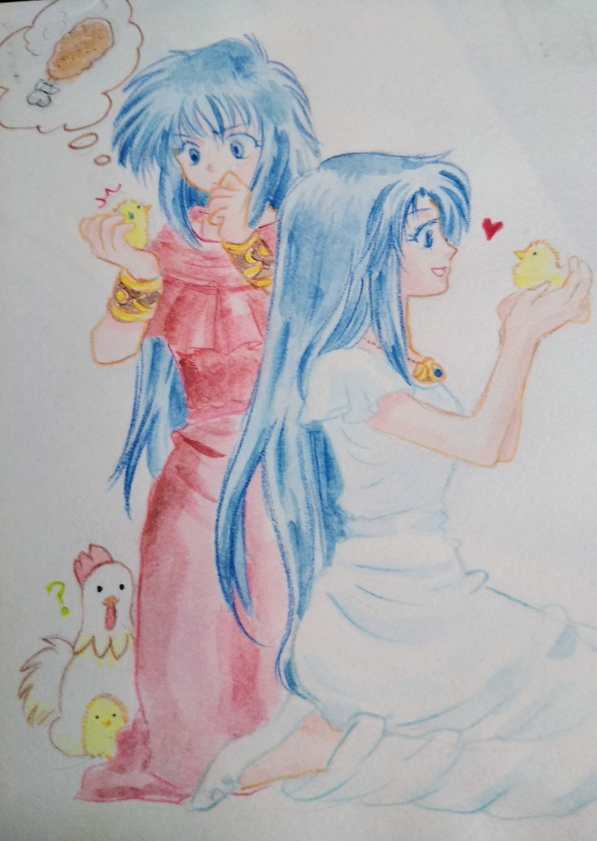 12 62 いい双子の日らしいので過去絵ですがフィーナとレア。 多分2005年くらい… レア様がちょっとフカさんのレア様っぽい😁 22/11/25 11:47