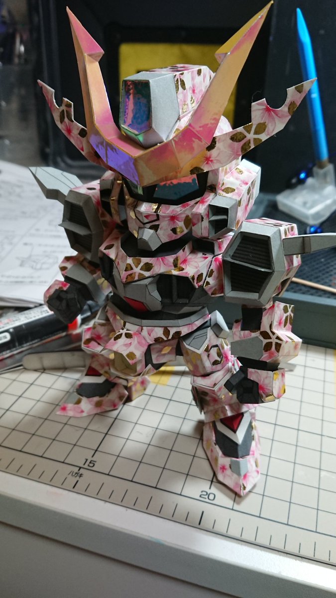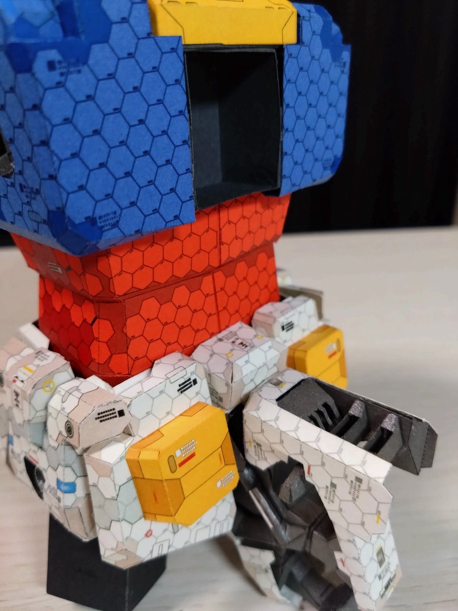 ペーパークラフト イグザイン マスキングテープ貼り付けて、トレーサー使ってカットして作成。 ガーベラさんのキットやったかな。 #ペーパークラフト