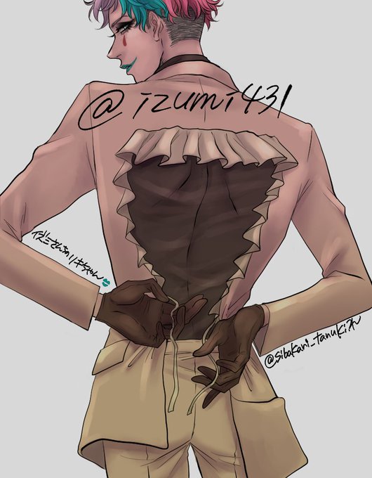③イズミさん(@izumi431)ちのりきちゃ!背面セクシースーツの🤡最高なので描かせて頂きました✌ せくし~元絵はこちら☞twitter.com/izumi431/statu… twitter.com/sibakari_tanuk…