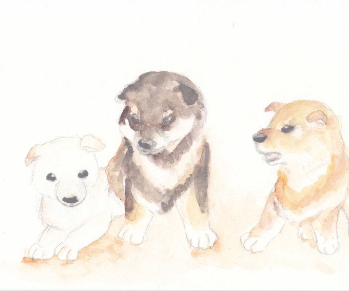 5 17 #水彩行進曲 「3つの」 遅刻ですが3つの色の子犬です🐶 23/03/18 09:14