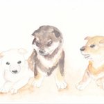 #水彩行進曲 「3つの」 遅刻ですが3つの色の子犬です🐶