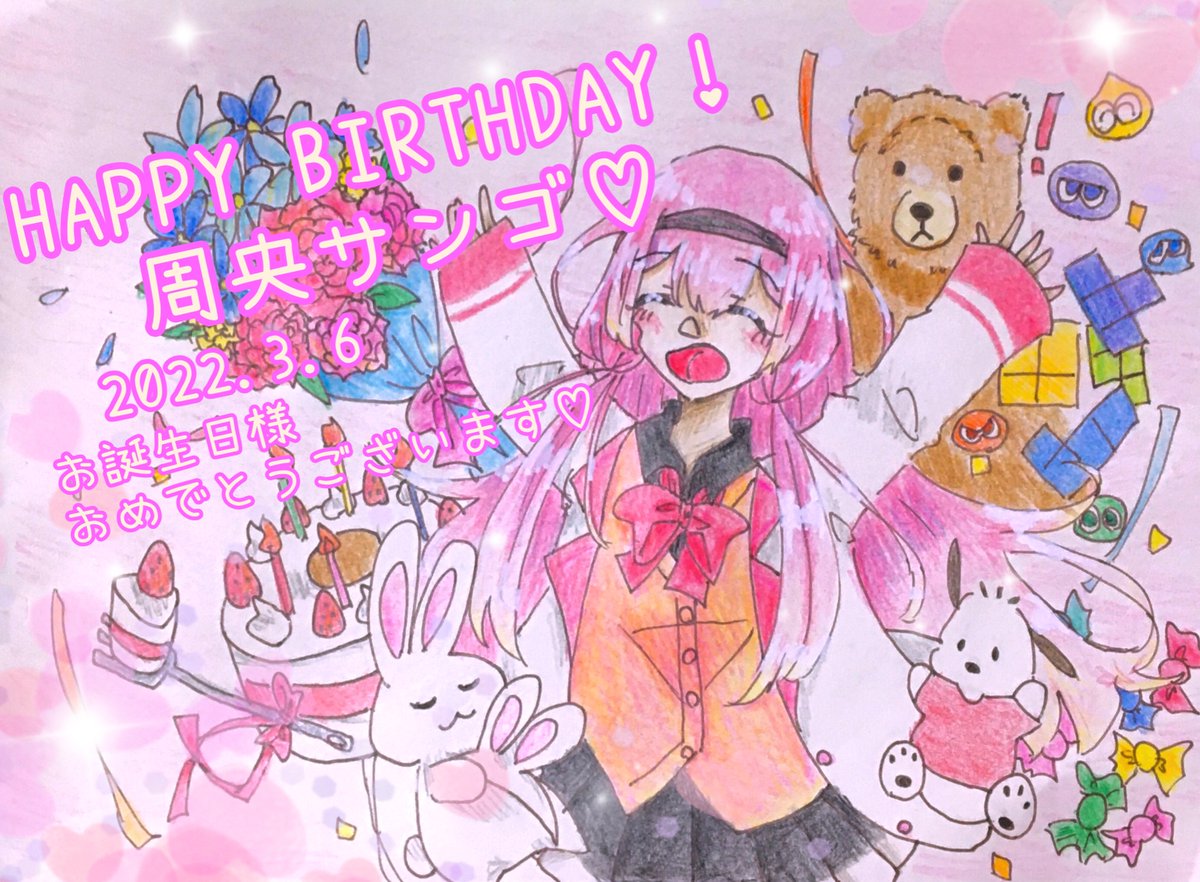#周央サンゴ生まれたンゴねぇ #描くンゴ うお〜〜〜〜〜〜大遅刻………!!!!!ンゴちゃんお誕生日おめでとうでした〜!!!!!🎂🎉✨✨✨ これからもンゴちゃんの活躍を陰ながら応援しています🦩💞