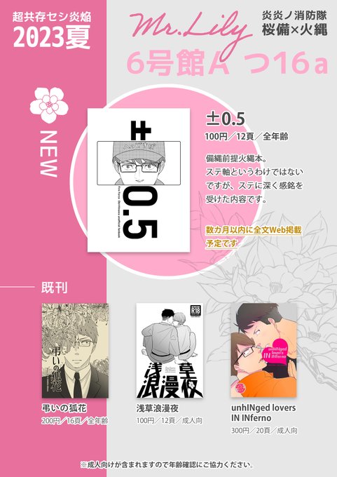 8/20共焔のお品書きです!しぶの方も!備縄のみ!参加される方どうぞよろしくお願いいたします☺ 🌸お品書き🔥 pixiv.net/artworks/11086… 🌸コピー本サンプル🔥 pixiv.net/artworks/11086…