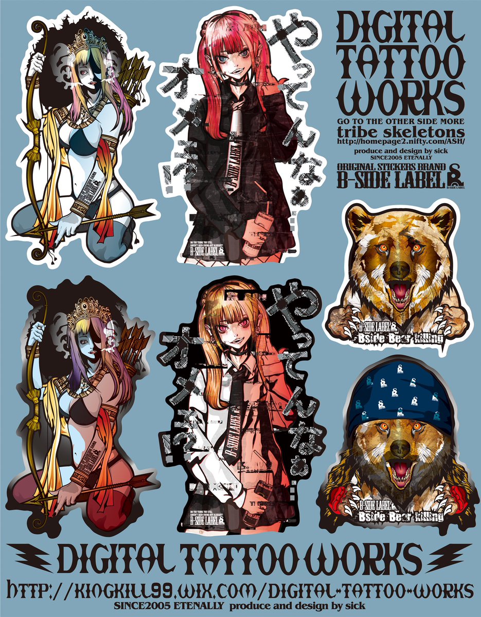 今月のb-sidelabelの新作はこんな感じです。 今回はいつとちょっと違う雰囲気?のも描いてみました、どうでしょうかね。 直営店、宣伝販売等で明日から発売開始されてるみたいなので宜しくどーぞ!! #bsidelabel #ビーサイドレーベル #digitaltattooworks