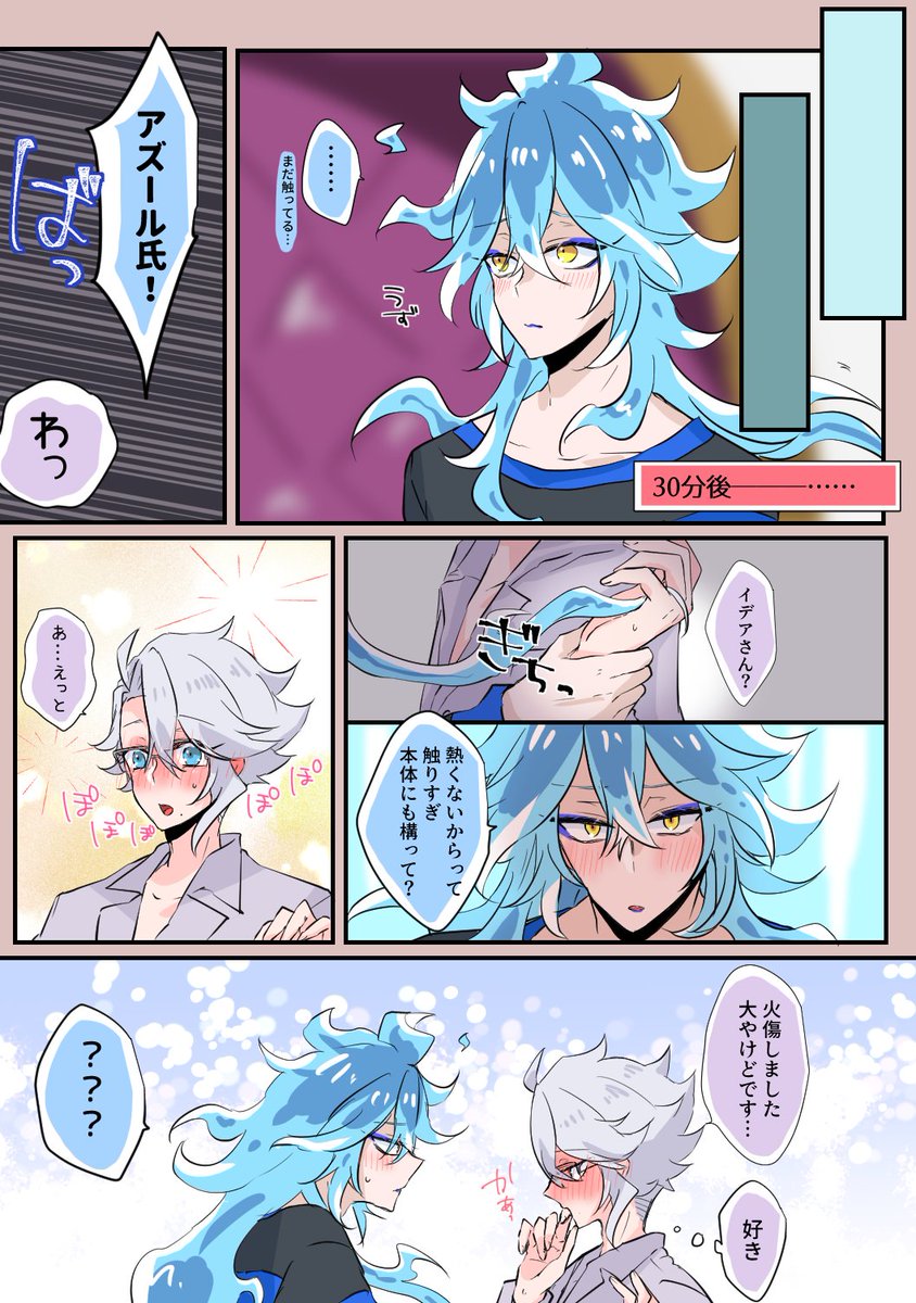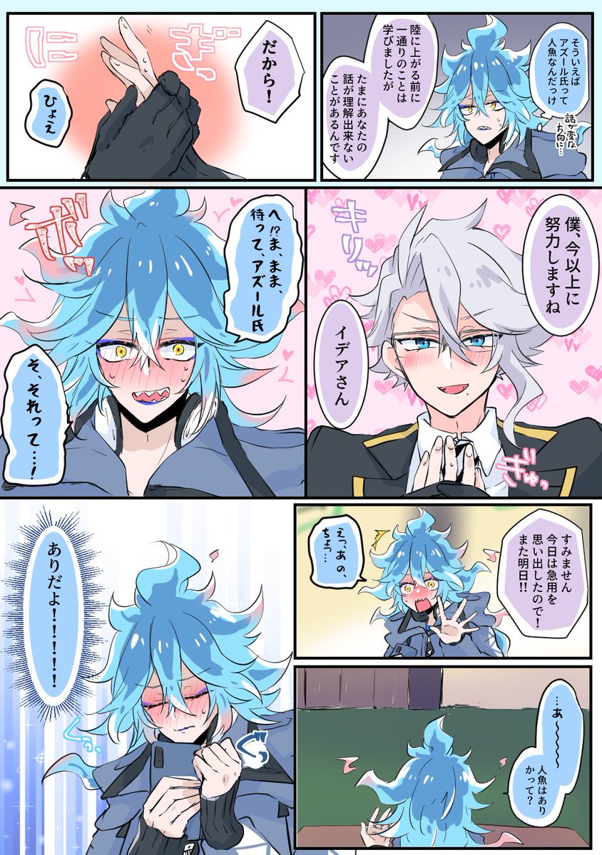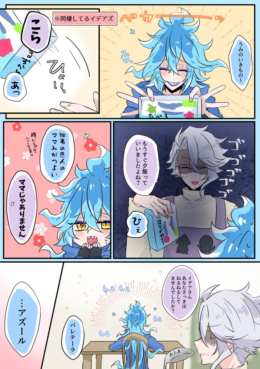 #イデアズ版深夜の60分一本勝負 「水中」 めっちゃくちゃオーバーしています(土下座) 付き合ってる💀🐙 水中でキスさせたいが為に色々詰め込んだら収まりがつかなくなりました 🐙ちゃんは褒められて嬉しいのもあるけど、海は怖いので💀くんピンピンしててホッとしたのがでかいですね