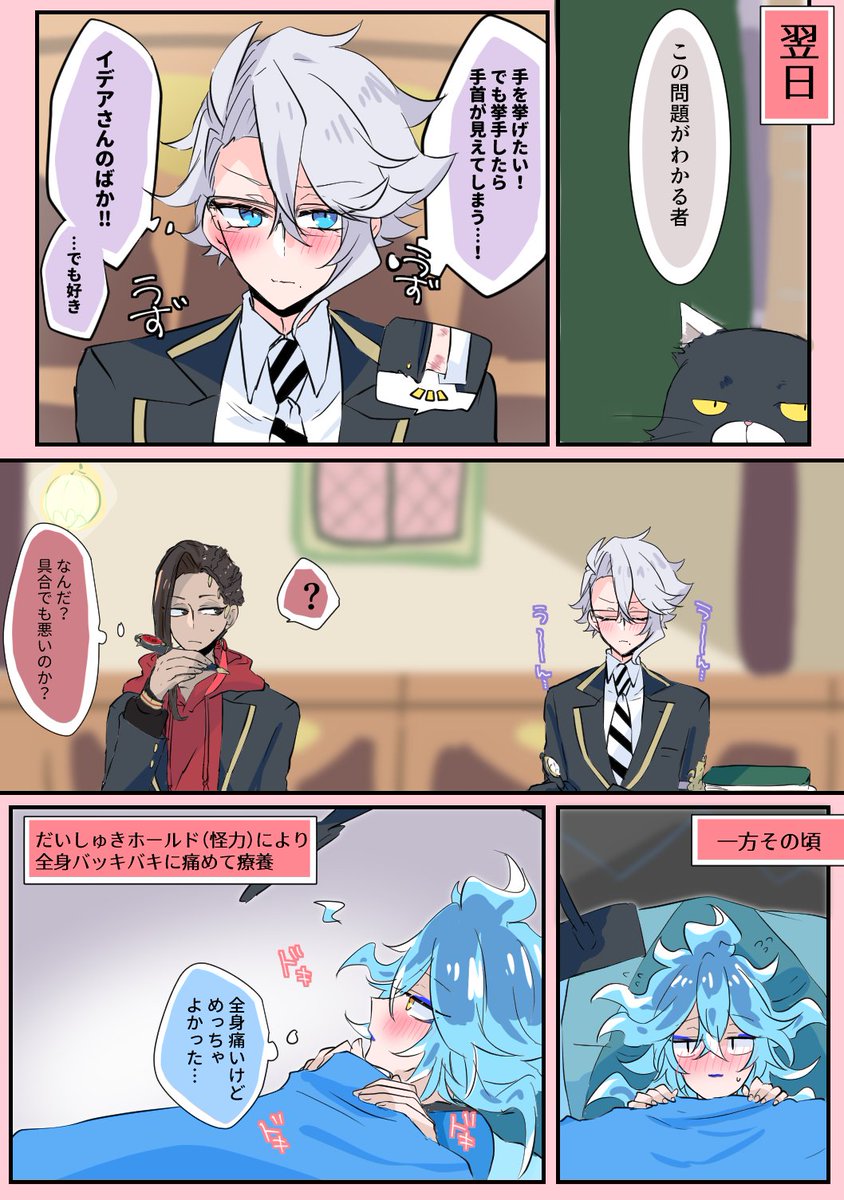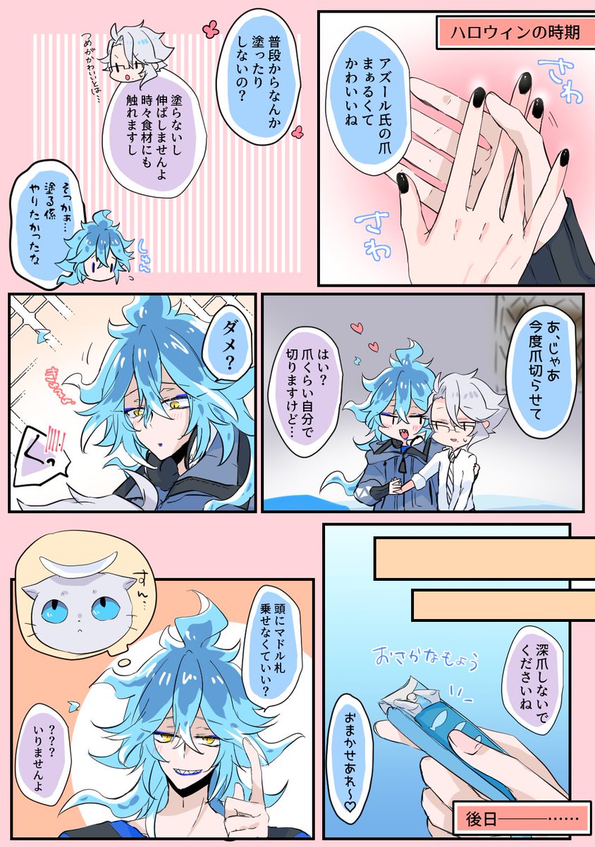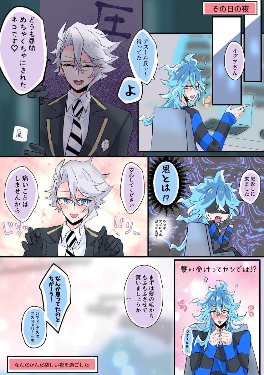 #イデアズ版深夜の60分一本勝負 「変身」 オーバーしています ※付き合ってる💀🐙です ねこちゃんになる🐙ちゃん多分自分は描いたこと無かったのでここぞとばかりに🐈🐾 お題は1枚目で回収してるので2枚目は2コマ目が描きたかっただけです
