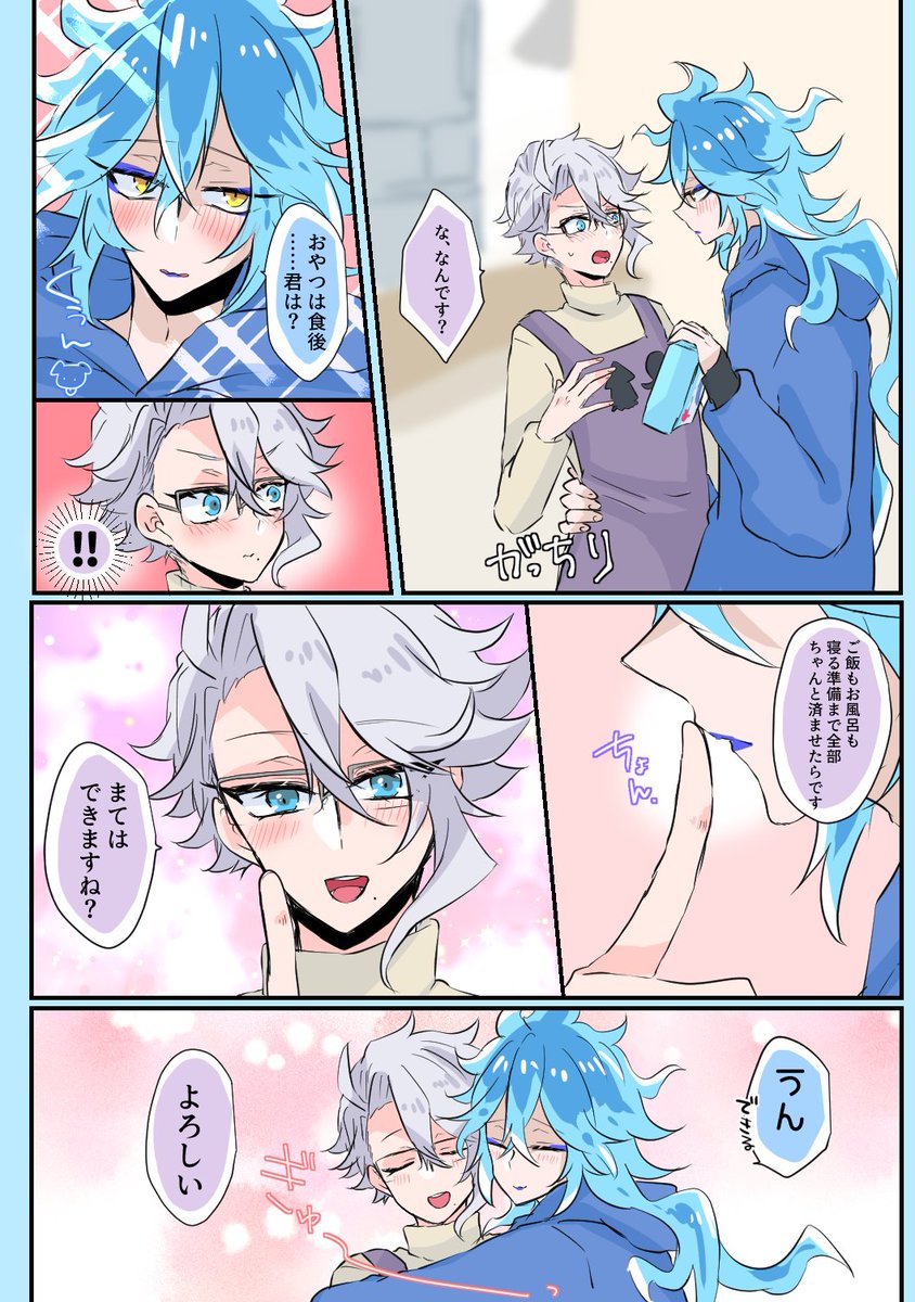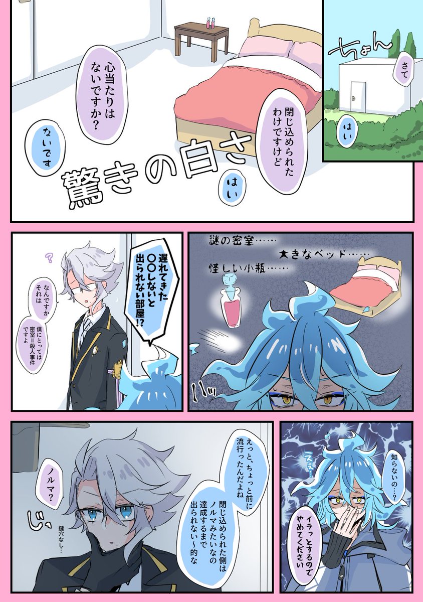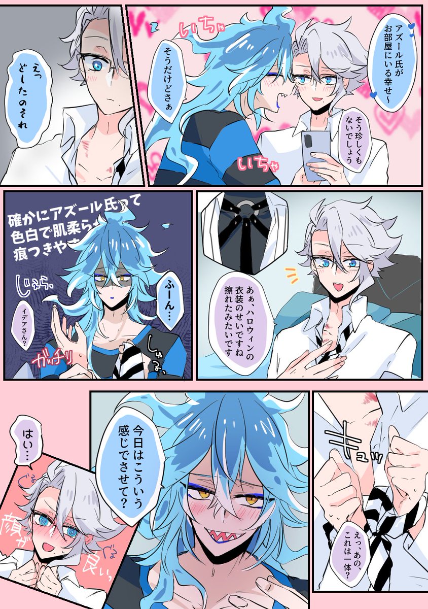 #イデアズ版深夜の60分一本勝負 「交換」 オーバーしています 付き合ってる💀🐙がイチャイチャしてるだけ そういう方面の知識量💀>>>🐙だけど、自分だけふにゃふにゃなの悔しいので強がる🐙の図