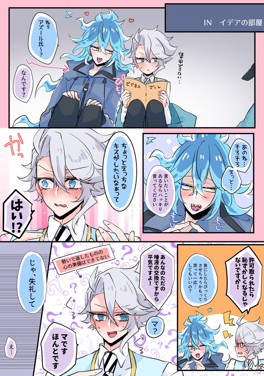 #イデアズ版深夜の60分一本勝負 「間接キス」 オーバーしています ※付き合ってる💀🐙 (付き合って少ししか経ってないくらい) ちゅーしたいけど勇気なくて、間接キスならいける!ってなってる💀くんと、魂胆見抜いて罠に嵌める🐙ちゃんの図