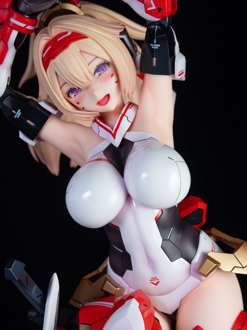 夏ワンフェスで購入したシェリフ堂(@syerihu)さんのガレージキット、"ニーナ・カリーニナ/破軍" 完成しました!ハラショー!さすがカリーニナ同志だ! アナザースーツは濃い青と彩度の高い水色でビシっと。思い付きで紅花の差し入れ肉まんを自作しています 。 #アリスギア #アリスギア5周年