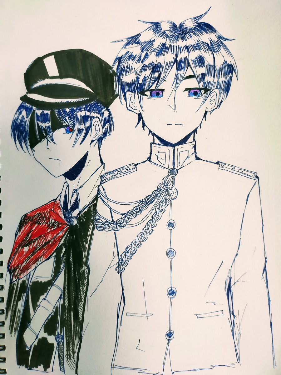 後輩さんに、イタリアの軍服と日本の軍服を着せただけのイラ 軍服はロマンがいっぱいなんだよなぁ #wrwrdFA