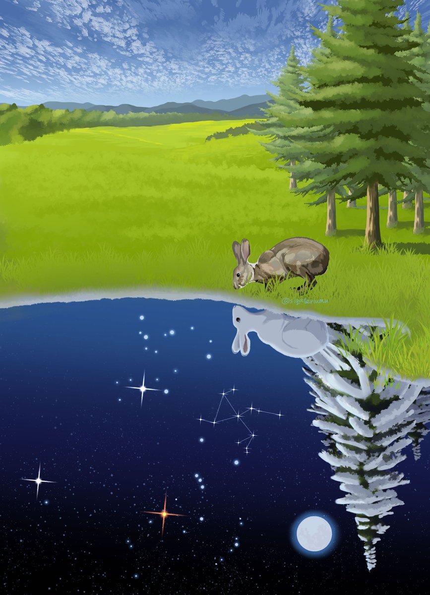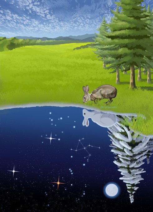 #作品をみてくださいあわよくばフォローしてください祭 #夏の創作クラスタフォロー祭り 暑いので下半分は冬のイラスト貼っておきます。少しでも涼んでもらえればうれしいです❄️ いつの間にか卯年ももう半分以上過ぎ去ってしまいましたね🌕🐇