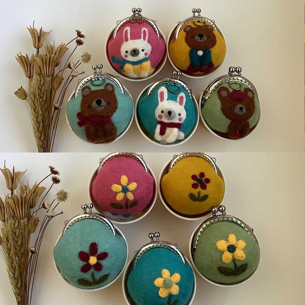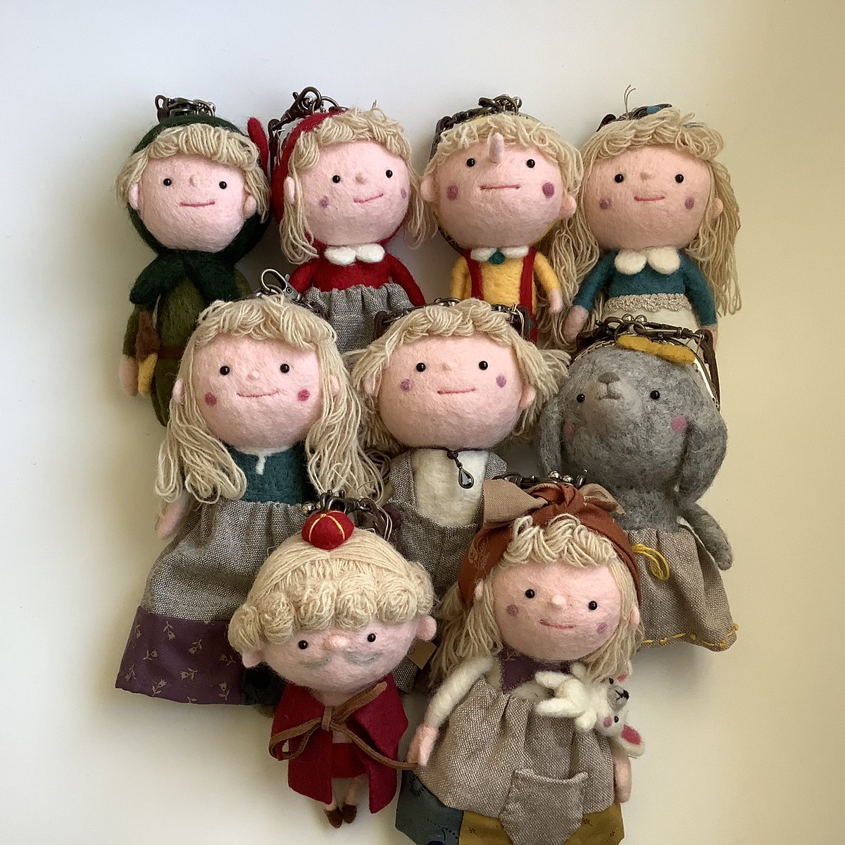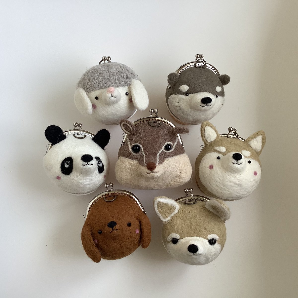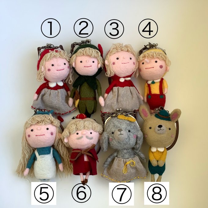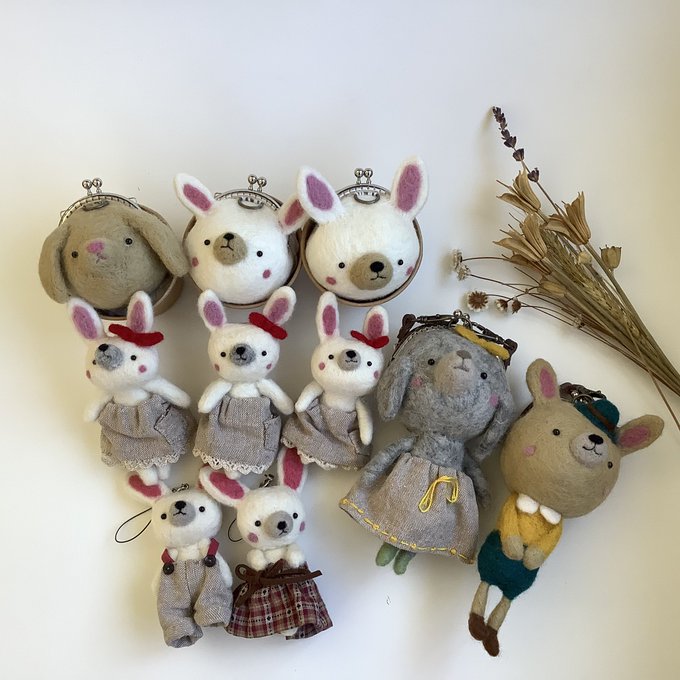 「 #うさぎの森の冬の市」 12月21日~27日 阪急うめだ本店 うめだスーク 中央街区 1、2、3番小屋 通販ご希望の方は画像を添付し @AMULETomise へDM またはメールにてご連絡下さい。 ①~⑧ がま口人形 約14cm~17cm #羊毛フェルト