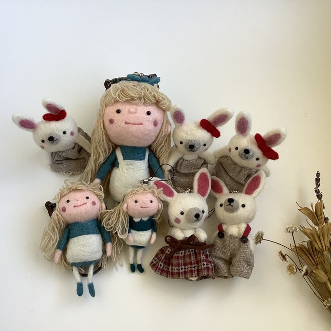 アリスとうさぎたち。 「#うさぎの森の冬の市」へ出発しますー。 amulet-blog.cocolog-nifty.com/atelier/2022/1… 通販は @AMULETomise へDM もしくは📧 ishizaka@mbe.nifty.com 通販用に画像を順次アップしていきます~ #羊毛フェルト