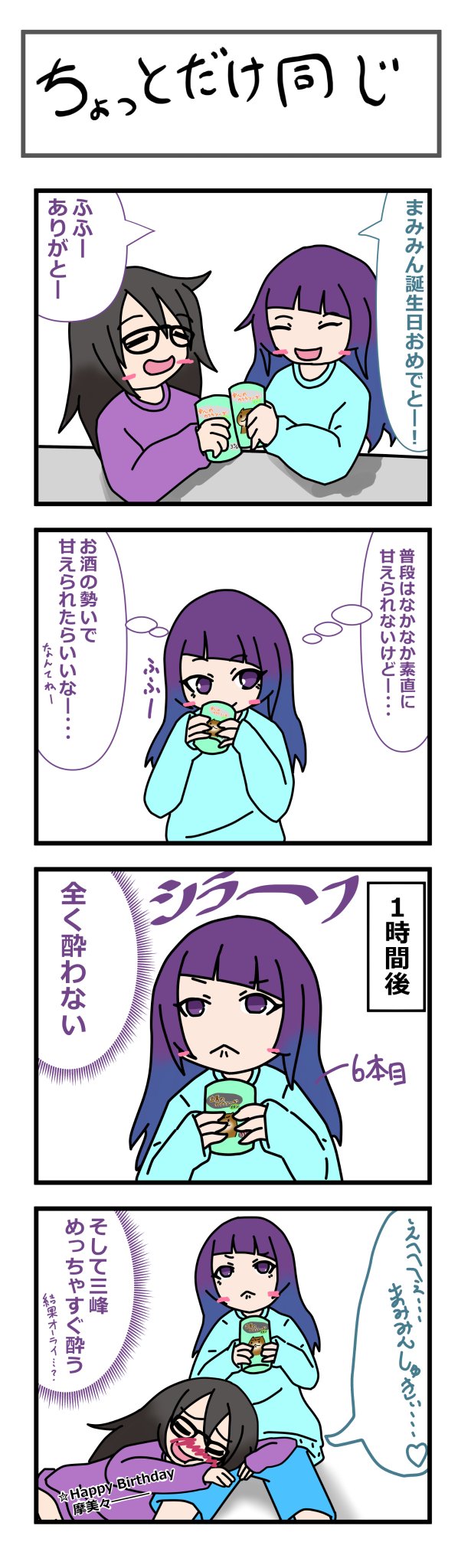 まみみちゃん誕生日おめでとうだよ!!!! 三峰が早生まれだから一時的に同い年になるもんね 久しぶりにいちゃいちゃしてる(?)まみみねちゃんです。 カワウソは出ません。 #田中摩美々生誕祭 #田中摩美々生誕祭2020