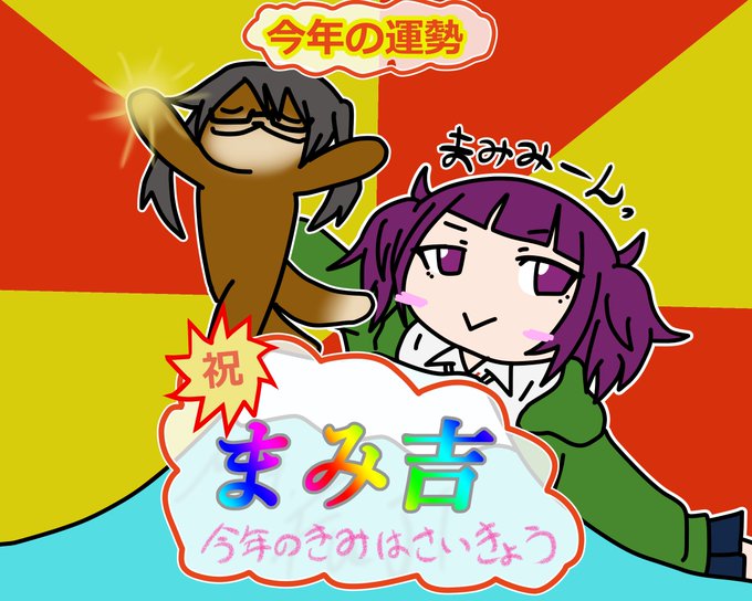 急造てやんてやんダンスで摩美々をお祝いするカワウソです。 三峰も急に描きたくなったけど体力とスペースがなかったです。 #田中摩美々生誕祭2021 #田中摩美々誕生祭2021 #カワウソ峰結華 #今日のたのしいカワウソ峰