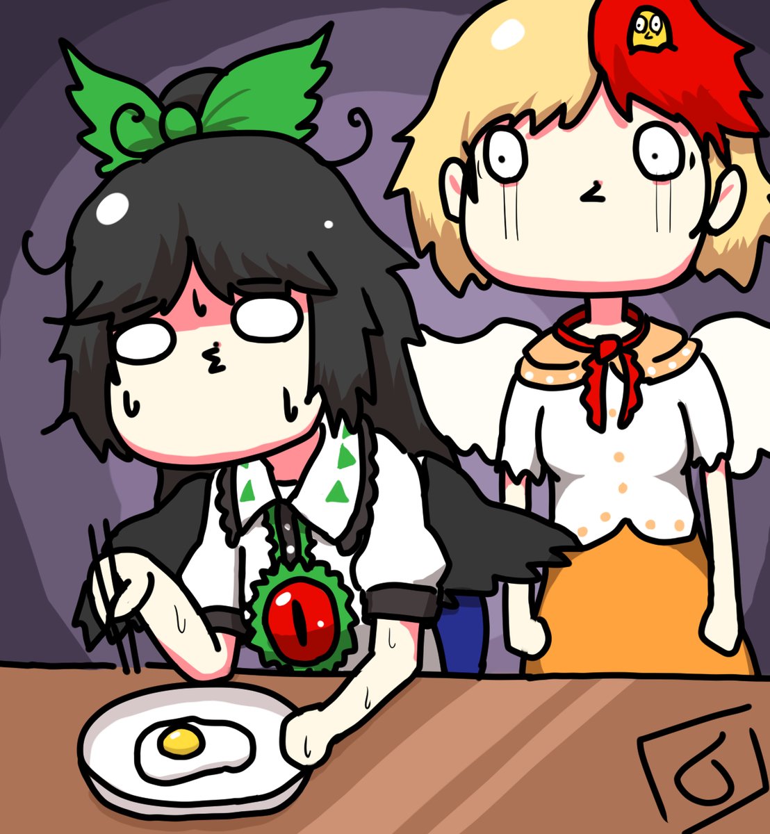 空と黄身とのあいだには 今日も冷たい雨が降る #深夜の真剣お絵描き60分一本勝負 #東方Project