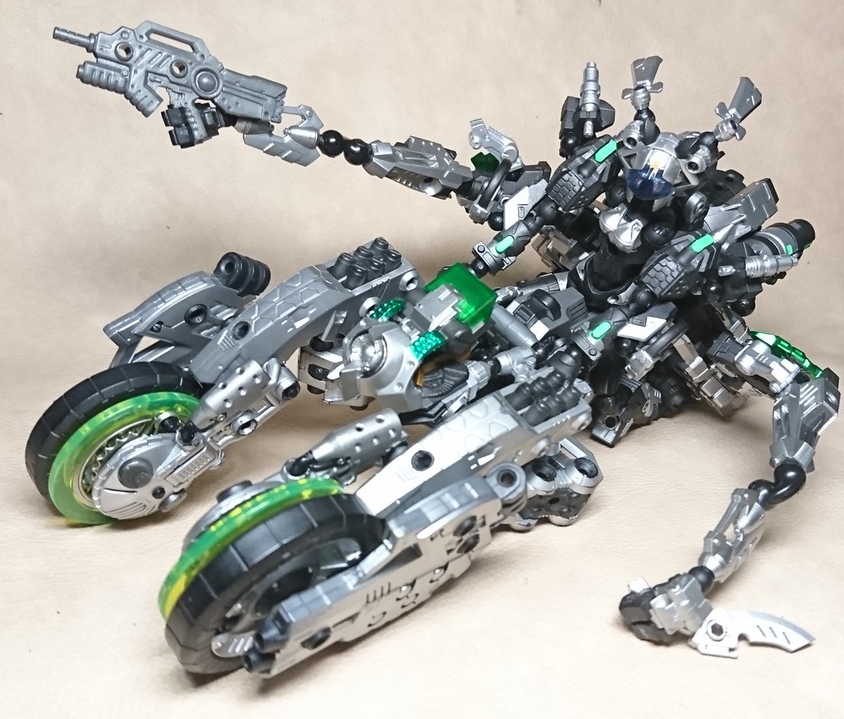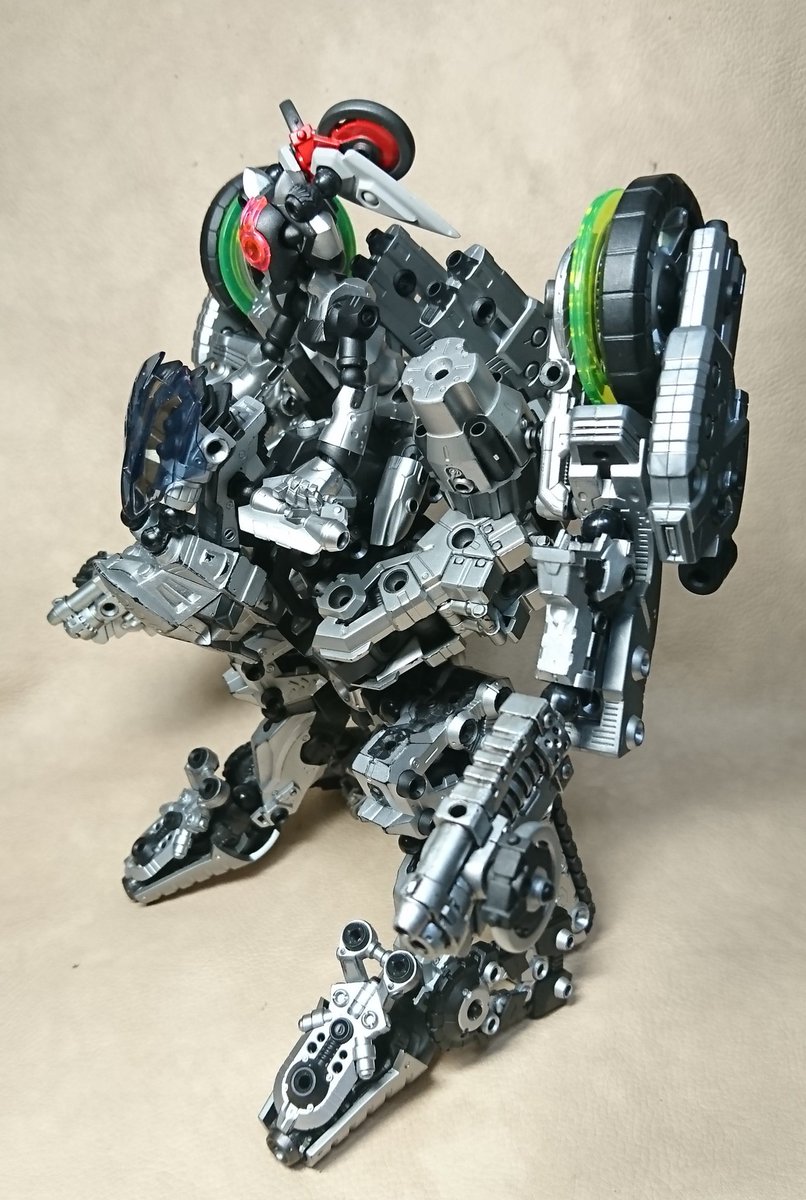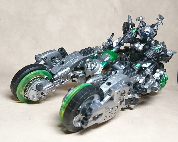 16 20 今日のアッセンブルさん。 ナイケン的なトライク。両サイドのバンパーアーム展開で走行中の格闘戦も可能だ!ライドバックみたいだがキニシナイ!w #アッセンブルボーグ #海洋堂 19/02/26 16:01
