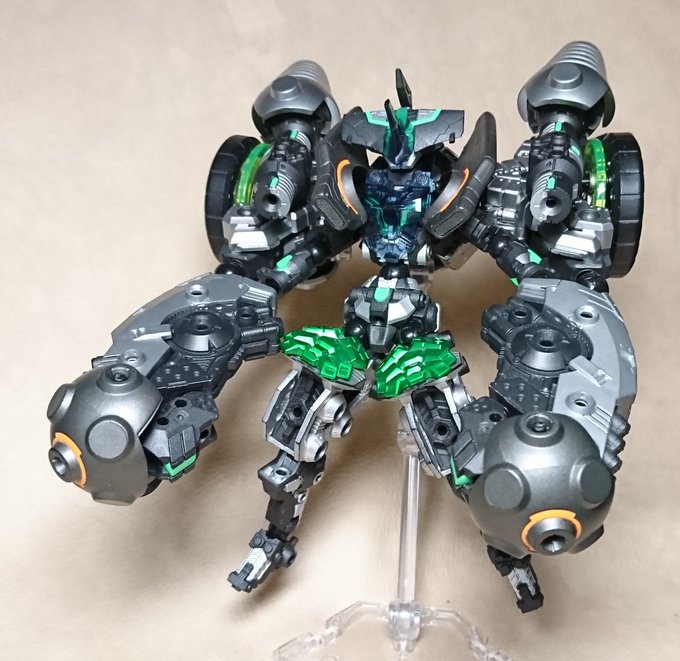 24 41 今日のアッセンブルさん。 空域格闘型アーモロイド『玄武』。 対消滅半重力エンジンを両肩に装備、空域での近接格闘を重視。 #アッセンブルボーグ #海洋堂 19/01/26 16:38