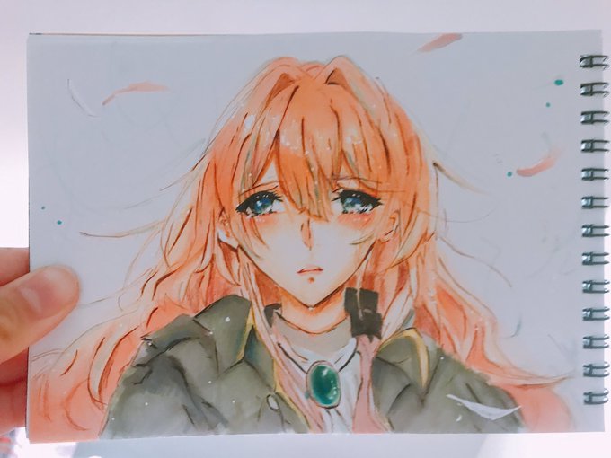 ちょっと見てみてください。 #ヴァイオレットエヴァーガーデン #コピック #色鉛筆 #女子高生 #初心者 #イラスト