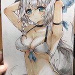 鉛筆は濃すぎないものということを。 ハイライトは大切ということを。 絵は遠目で見るものだということを。 教えてくれる人生初の水着絵の模写でした。 #模写 #イラスト #コピック #水着 #水着イラスト #白上フブキ #絵フブキ