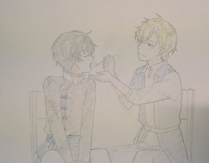 びずろぐでダメージ受けすぎたので東の主従のあーん描きました…髪型むずい…供養