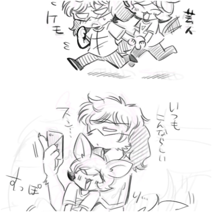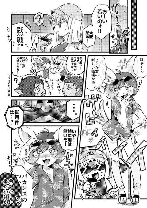 > 土方服のシャと…遊びに来たガルが見たいです… odaibako.net/detail/request… お題ありがとうございました♡ ケモが好きなので、土方ケモシャとチワワガル犬で描いてしまいました…🐶💦 シャ犬、この後何だかんだバカンスに強制連行されます よかったね🏖