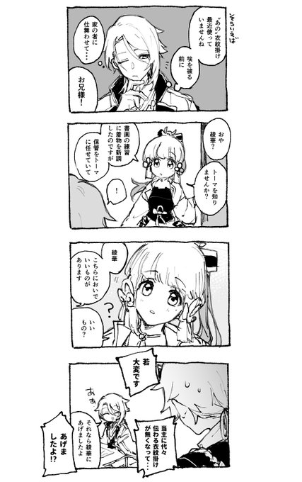 30 229 神里兄妹とトーマと衣紋掛けの幻覚四コマです #原神 22/03/28 01:40