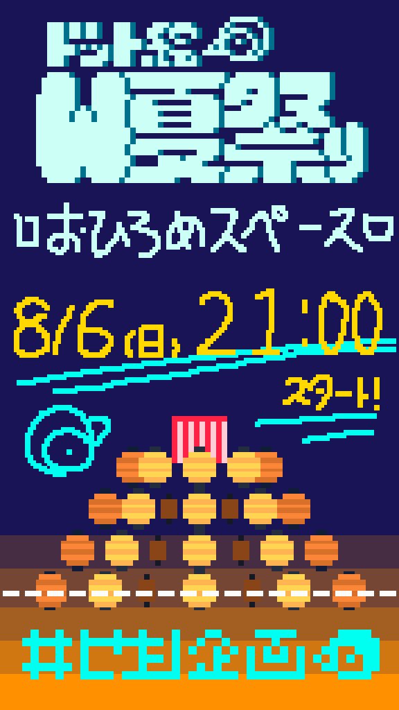 祭の季節じゃ〜🐧✨✨ #ドット絵W夏祭り 開催‼️‼️ ■#ヒサシ企画 第6弾 「みんなでシブヤ夏祭り」参加型集合絵! ■#数えてドット絵 スペシャル テーマ「夏祭り」 ミニドット絵チャレンジ! 本日7/15〜 〆は追い追い… ドット絵で 遊びまくるぞ〜🏮🐧✨✨ 参加方法 ルールは リプライへ↓