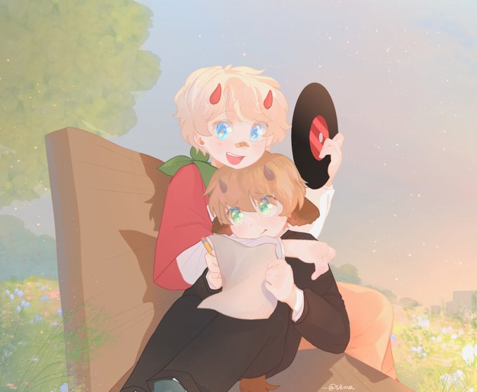 c! sillies on the bench 🌿へ( ^∀^) (design for something soon!) #clingyduofanart #tubbofanart #tommyinnitfanart