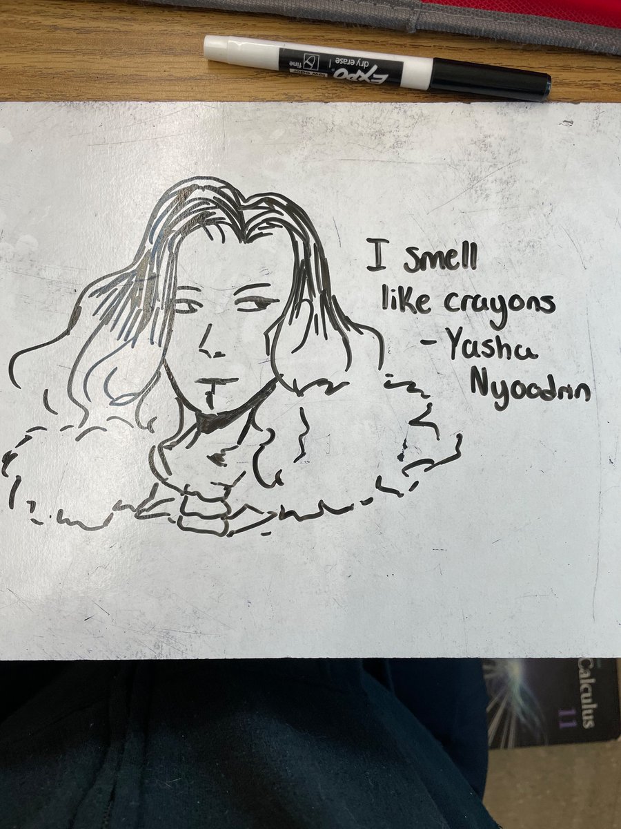 I always draw my best in pre cal 😭 Have a Yasha! I tried to draw Beau but I can do her hair #CriticalRole #criticalrolefanart #yashanydoorin