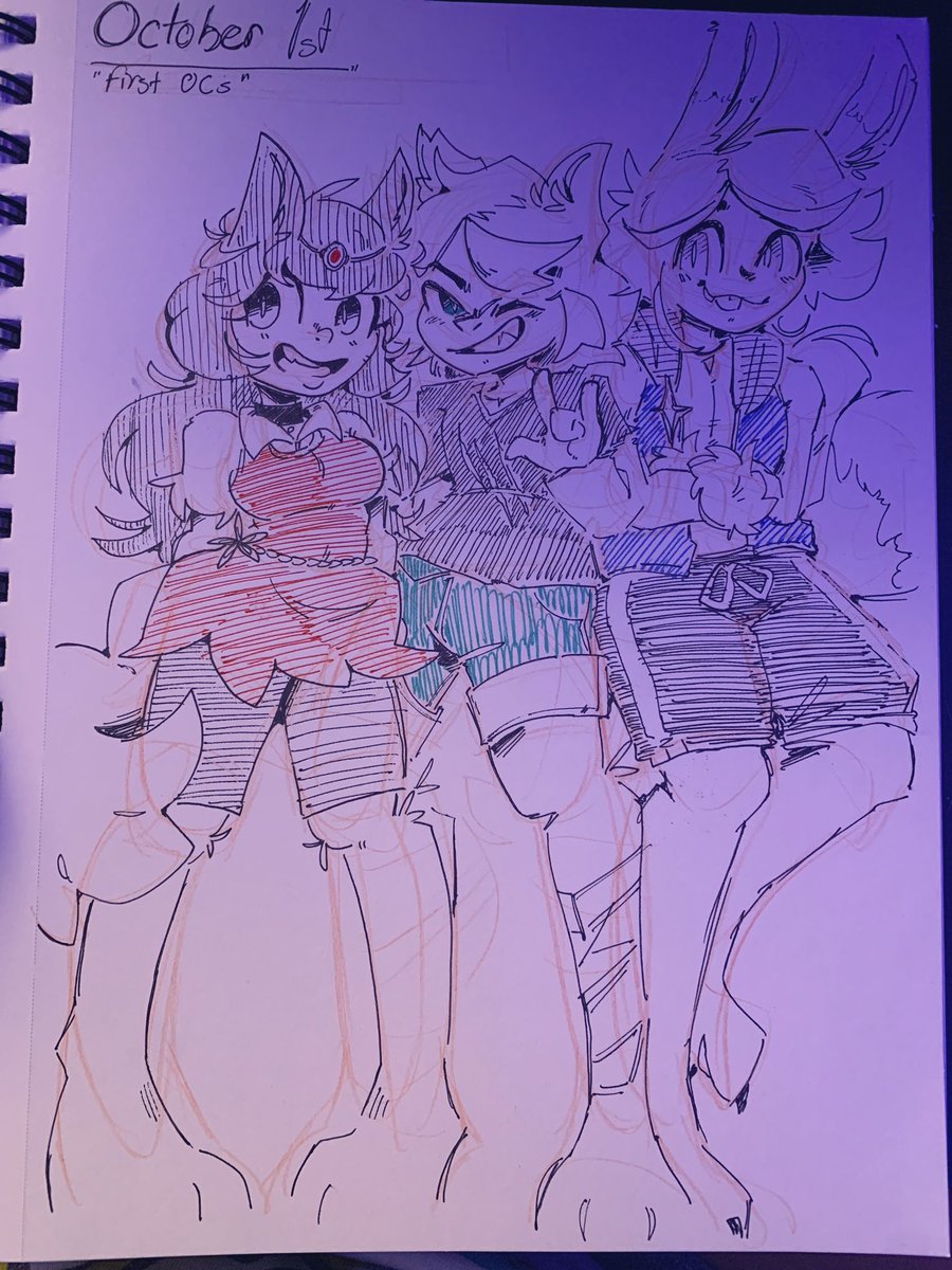 Day 1, First Ocs. Meet Naomi, Rings, and Pacif. From my middle school wolf vs fox war story ^^ #inktober2021 #october #octoberchallenge
