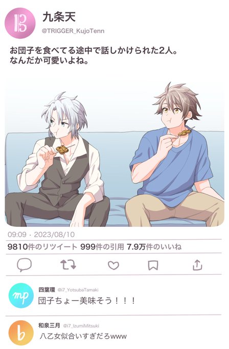 団子食べてる楽と龍之介🍡