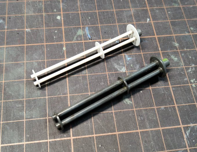 先日作ったファルケ、気になるところを改修始めました。1つはスタビライザーの穴サイズ。1mmに拡大開口して1.5mmで開口部を面取りしました。右が改修したパーツ。オリジナルは結構穴大きいんですよね。好みの問題ですけどこっちの方が力強い感じで好きです。 #マシーネンクリーガー