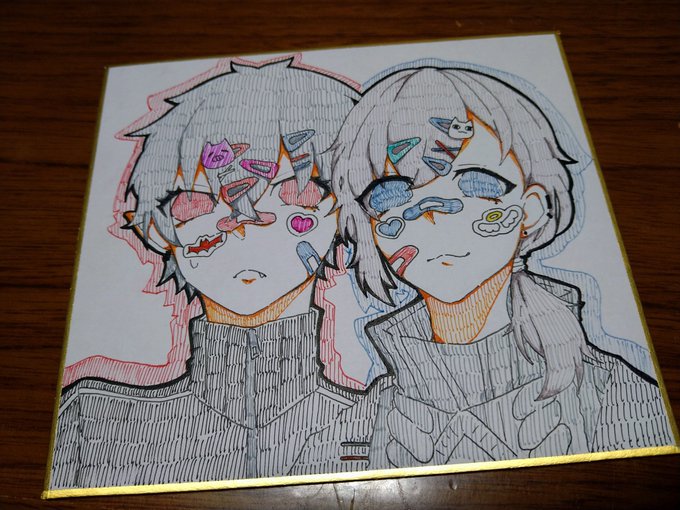 0 11 #くろのあとりえ #かな絵 #KuzuArt デコラ風のお2人。 22/05/22 20:49