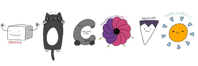 ヘッダー用にマスコッツ(?)達を描いてみました🥰 可愛く描けた気がする! #KuzuArt #かな絵 #加画美 #金剛力也像 #描いた晴
