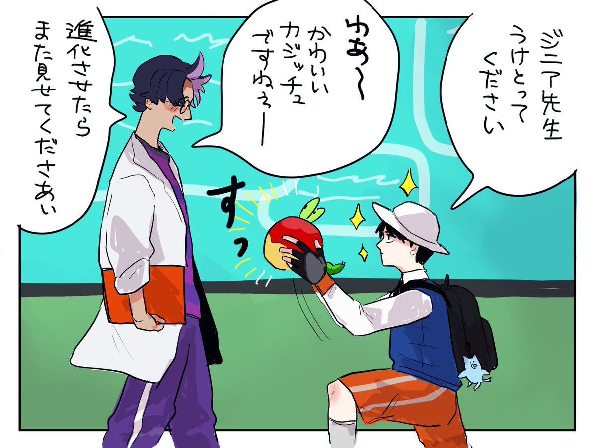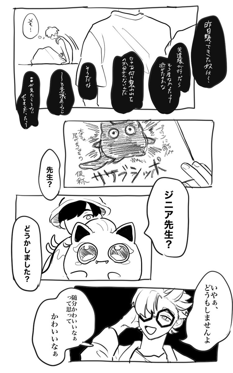 ジニ先生、エリアセ“ロに行ったことがあって欲しいし、そこでポケに襲われててほしいし、パラドクスポケを見て血相を変えて欲しいしサケブシッポは可愛いと思って書いたんだけど超雑難解漫画になってしまった供養