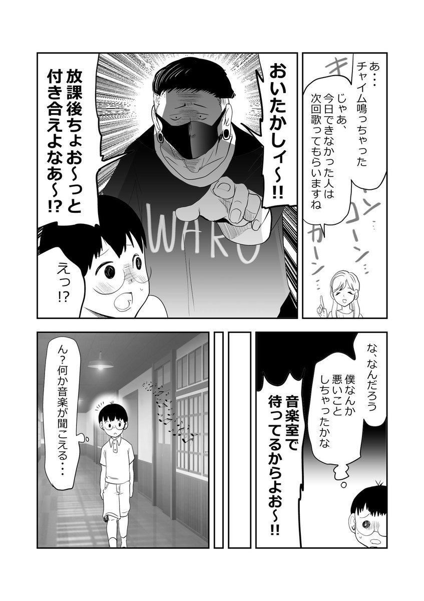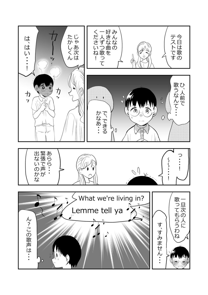 気弱な小学生、歌のテストにチャレンジするが…⁉️👦😈2/3 #漫画が読めるハッシュタグ #悪山くんとたかしちゃん