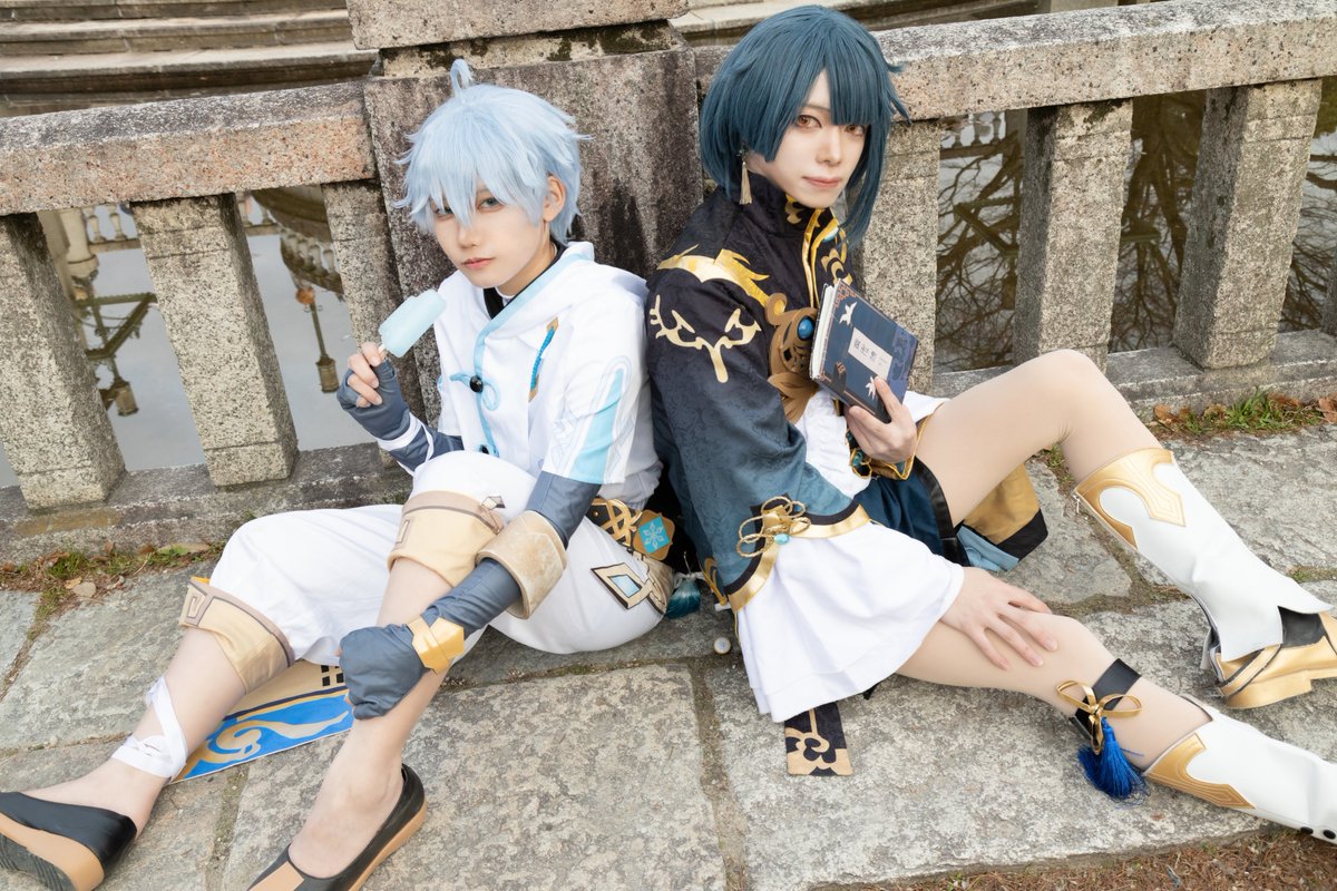 ⚠️コスプレ注意 gnsn/🍨📚 「重雲、一冊朗読してくれないかい? そうすれば僕は頭を使わなくて 済むからさ。」 「それは読書家としていいのか?」 📚▶@wren_wrench 📸様▶@Diamant_cos #アコスタ #アコスタ鶴舞