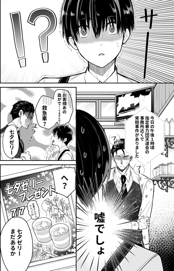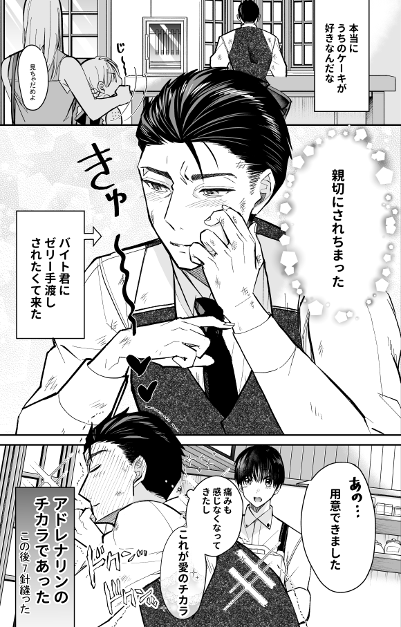甘党ヤクザとケーキ屋バイト君のすれ違いBL漫画を描いてます。3月に単行本が出たばかりなのでよろしくお願いします🎂 リプに作品と単行本の詳細をつなげてます #フォロワー10000以下の一次創作作家発掘フェス #創作BL 1/3