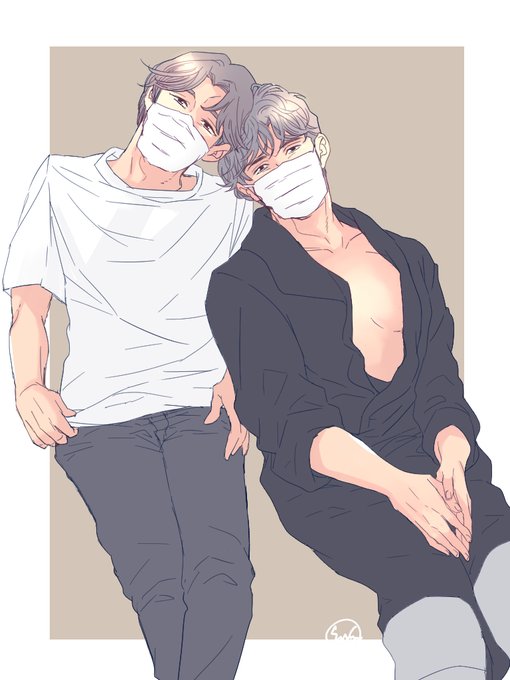58 471 いやもう…寄りかかられて嬉しそうに見える井ノ原さんと、気の抜けきった坂本くんがめちゃくちゃくぁわうぃいからマスクとマスクない(妄想)で描きました…すいません… 22/02/25 00:41