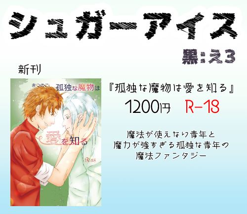 #創作BLオンリー黒チョコ 『シュガーアイス』は【黒 お-2】で甘々えっちなBL小説を頒布しております! 特典もりもりお付けしますので、よろしくお願いします!!!! simca4463.booth.pm/item_lists/n6R…