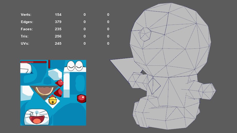#256fes #3DCG #lowpoly △256でドラちゃん作りました! 256ポリで作るにはモチーフを間違えた気がしてなりませんがなんとかなったからヨシ!!