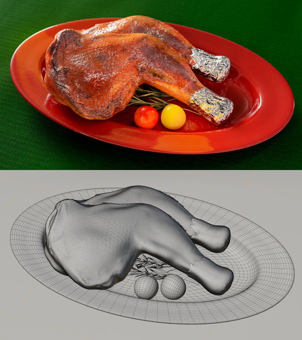 136 1233 チキン食べろ #3DCG #b3d #CGごはん 21/12/24 20:49